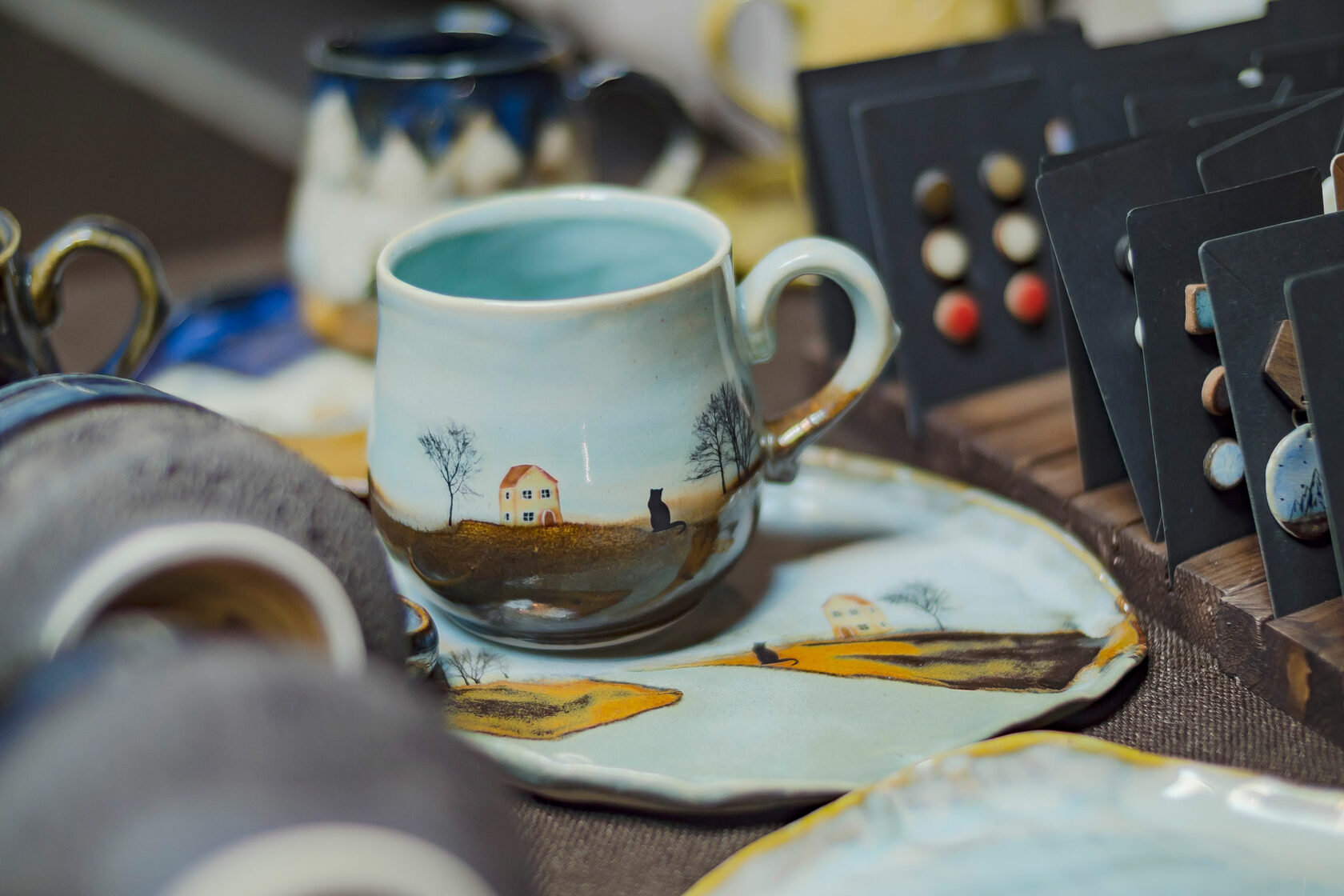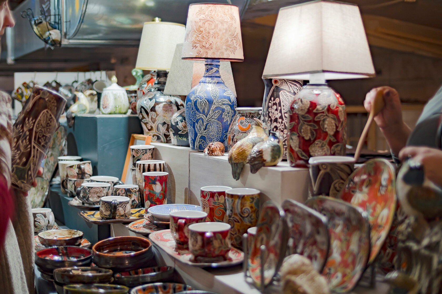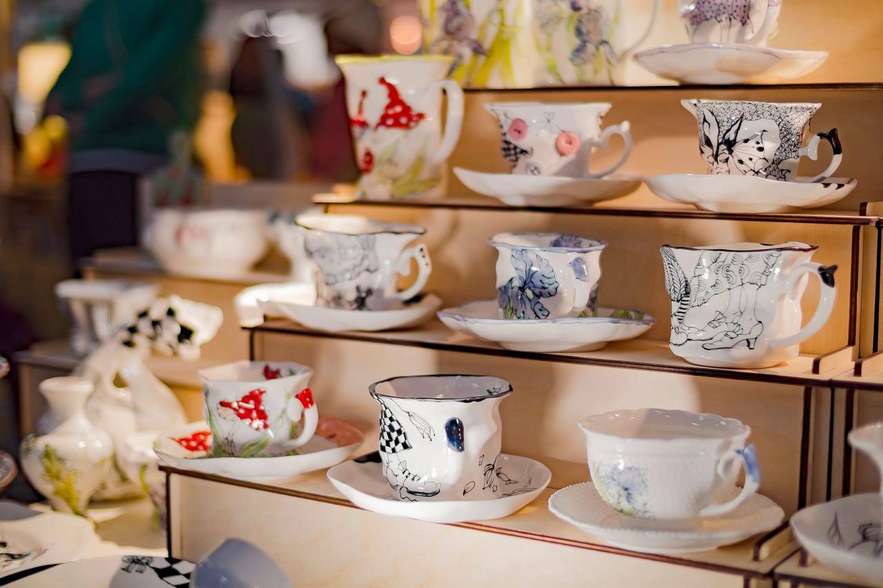 Здесь вы найдете авторскую посуду, ёлочные игрушки, новогодние украшения, интерьерную керамику, вазы и даже немного бижутерии.